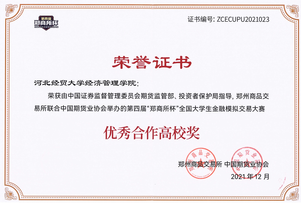近日,第四届“郑商所杯”全国大学生金融模拟交易大赛落下帷幕并揭晓获奖情况。beat365首次参加此项竞赛,实现了期货期权领域专业竞赛的历史性突破,在参赛师生的共同努力下,同浙江大学、南开大学等全国77所高校一同荣获优秀合作高校奖。