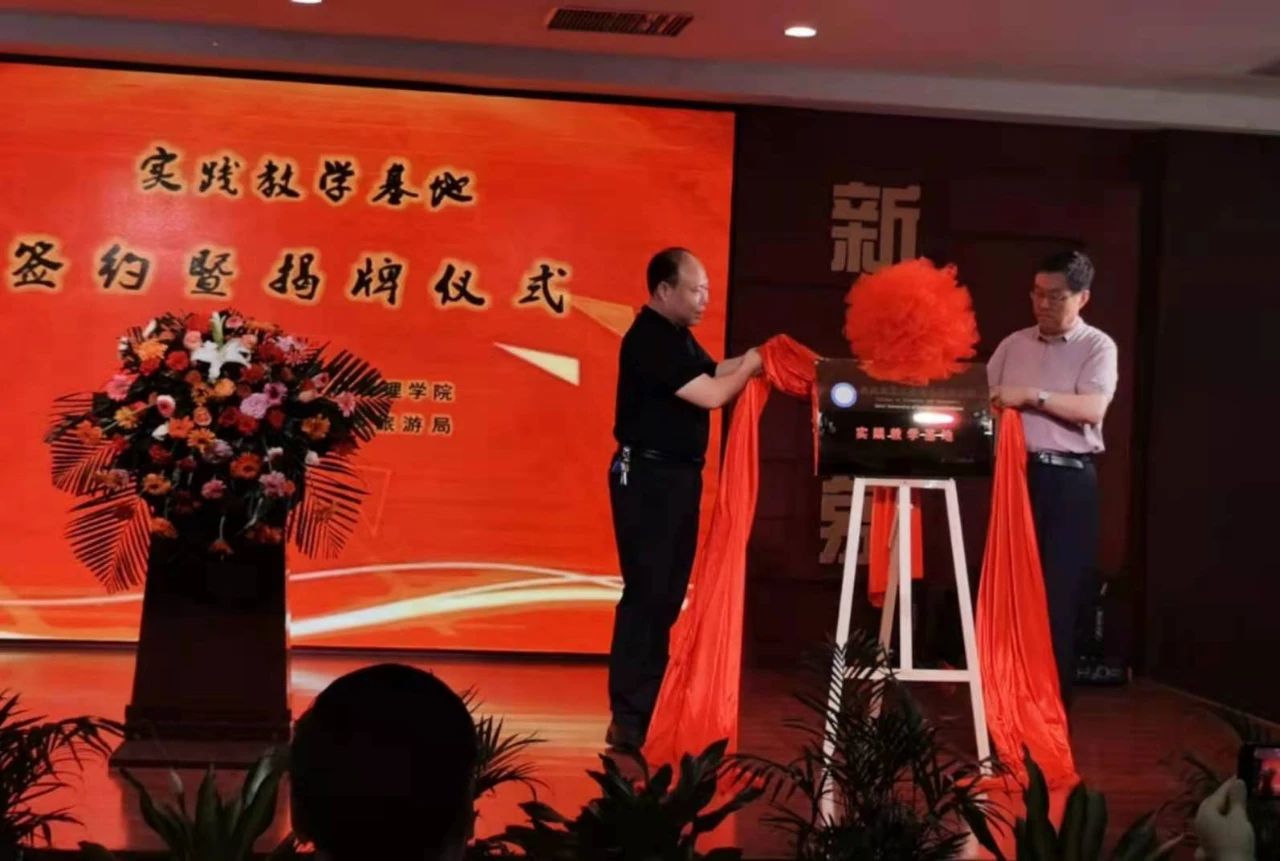在全场嘉宾及领导的共同见证下,学院领导张金桐与临漳县文化广电和旅游局局长张太平签署合作协议,与临漳县副县长杨艳峰共同为基地揭牌。