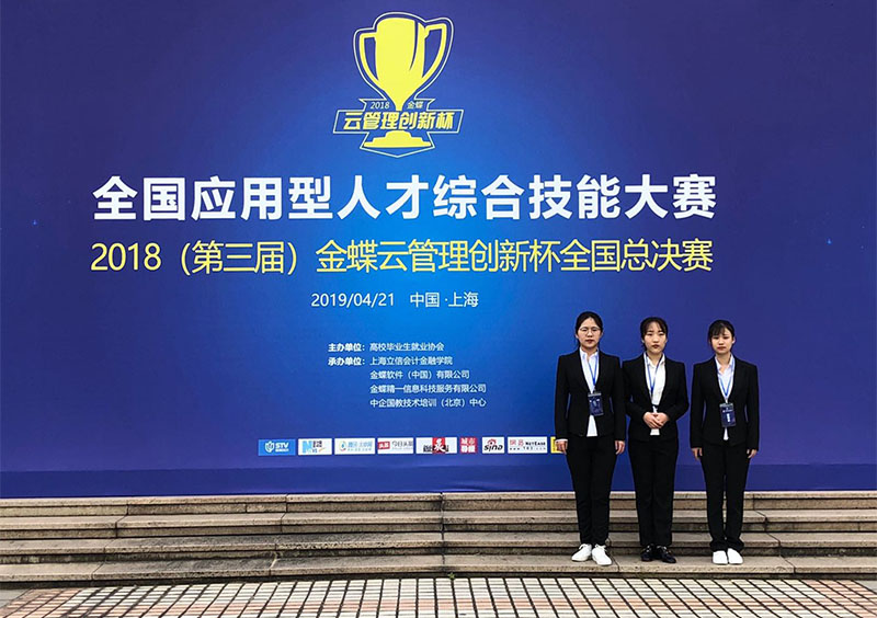 4月21日,全国应用型人才综合技能大赛——2018(第三届)“金蝶云管理创新杯”互联网+管理应用全国总决赛在上海立信会计金融学院隆重举行,beat365代表队荣获全国二等奖。