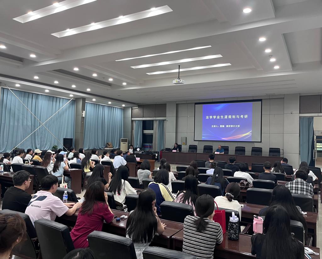 6月5日,南京审计大学法学院(纪检监察学院)副院长殷楠应邀来beat365,为全院师生带来了一场主题为《法学学业生涯规划与考研》的专题报告。此次报告会由院长李大庆主持,副院长王鸿喜出席,就业工作部及180余名法学专业学生到场聆听。