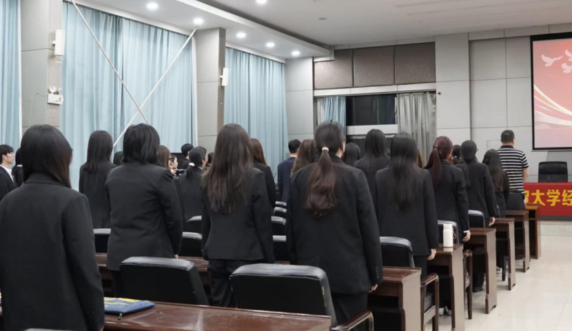 仪式伊始,全场肃立,报告厅瞬间陷入一片寂静激昂的国歌奏响。全体人员齐声高唱,歌声嘹亮,如洪钟般响彻会场。这庄严的时刻,不仅是对祖国的致敬,更点燃了每一位青马学员心中的信念之火,激励着大家在追求理想的道路上奋勇前行。