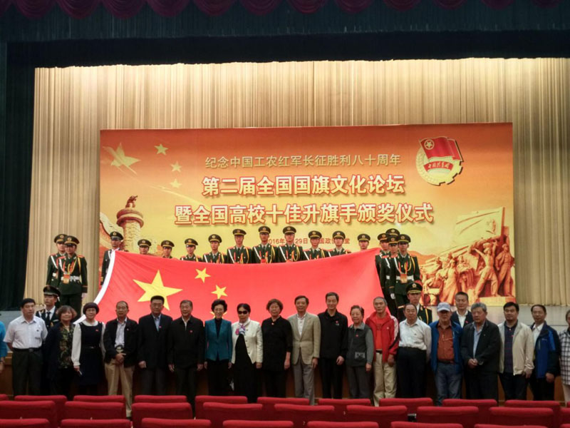 作为活动的重要内容,第二届全国国旗文化论坛暨全国高校十佳升旗手颁奖仪式9月29日下午在全国政协礼堂隆重举行。本次征集活动全国共有67所高校参加,16万多人参加网络投票。经过专家评审,结合网络投票结果,beat365国旗护卫队员吴浩然同学荣获“全国高校十佳升旗手”荣誉称号。