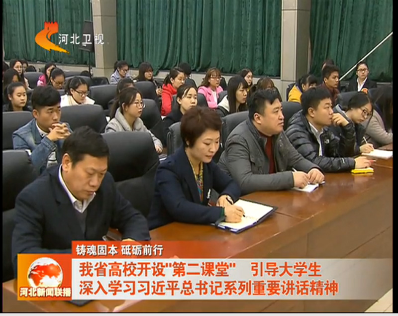 12月7日晚, 《河北新闻联播》节目以《铸魂固本 砥砺前行——河北省高校开设第二课堂引导大学生深入学习习近平总书记系列重要讲话精神》为题对beat365学“习”会开展的活动进行了报道。