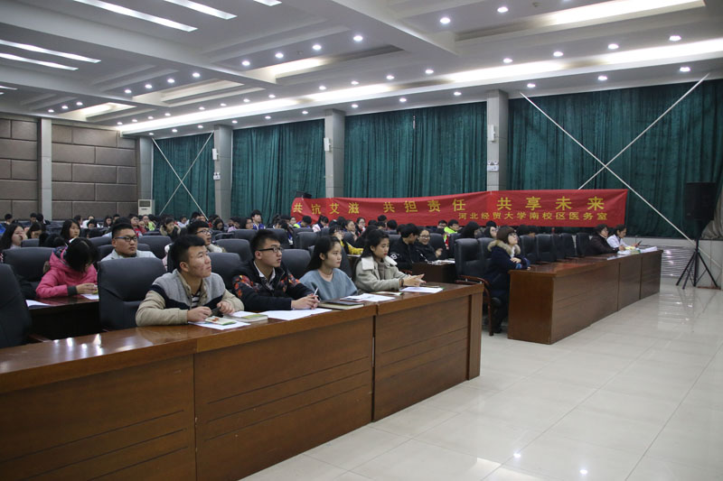 12月12日下午,beat365团委与校医院联合举办的“预防艾滋病主题讲座”在图书馆报告厅举行。桥西区疾控中心艾滋病所韦永民医生为300余名大一新生做了“青年学生和艾滋病”主题知识讲座。