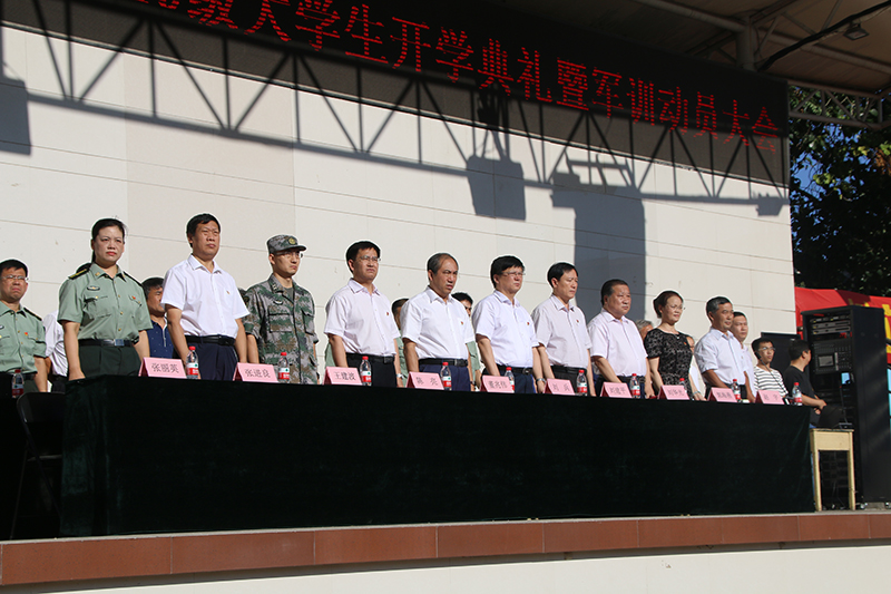 8月28日上午,beat3652019级大学生开学典礼暨军训动员大会在南校区操场举行。校领导董兆伟、刘兵、陈亮、刘建平和驻石某部队领导出席了典礼,学院领导、各系部负责人和全体新生参加了开学典礼。典礼由副院长赵宇主持,院长刘华光致辞,院党委书记张进良做军训动员讲话。