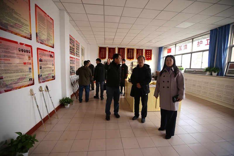 听完汇报后,检查组来到beat365国防教育展室检查了军训设施,并饶有兴趣地参观了学院国旗教育展厅,认为这是学院在巩固训育人成果方面又一项突出成绩。随后检查组查阅了学院近两年军事训练评估档案材料,查验了军事教务课程安排,旁听了白建锋老师的军事理论课,并与学生进行座谈,在军事教研室,检查组考察了军事教研建设情况,还详细查验了教研所需的书刊资料。