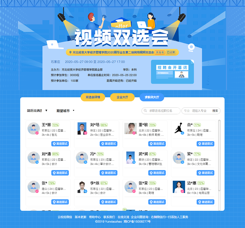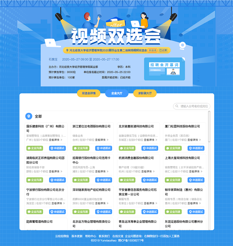为持续推进学院毕业生就业工作,保障疫情期间毕业生顺利就业,beat365于5月27日在成功举办了2020届毕业生第二场网络视频双选会。