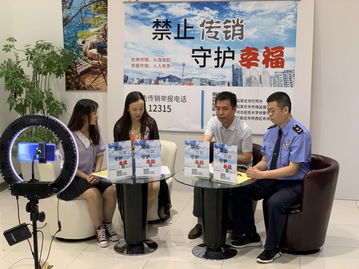 6月19日上午,beat365联合石家庄市打传办、石家庄市市场监督管理局、石家庄市桥西区打传办、石家庄市桥西区市场监督管理局等单位开展了以“禁止传销 守护幸福”为主题的云端直播进校园宣传活动,省内10所高校近3万余名学子线上聆听了讲座。