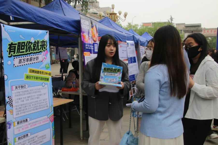 石家庄长虹家用电器销售有限公司代表高海霞准备借双选会机会招聘销售人员,她称赞道:“应届生的精神面貌非常好,学历和专业素质普遍较高,他们充满朝气与活力,对新知识、新技能的接受能力强,思维活跃,有很多创新想法,这是他们的优势。”同时她也指出,“应届生普遍存在实践经验不足的情况。在实际工作中,从理论知识到实际操作的转化还需要一定时间。不过,我们相信通过公司完善的培训体系,他们能够快速成长,适应岗位需求”。山东边垦集团公司是一家从事健康产业的公司,他们更看重学生的创新与执行能力。她认为,现实的工作场景复杂多变,如何将所学理论灵活运用于解决实际难题,是目前大学生亟待突破的关键环节。