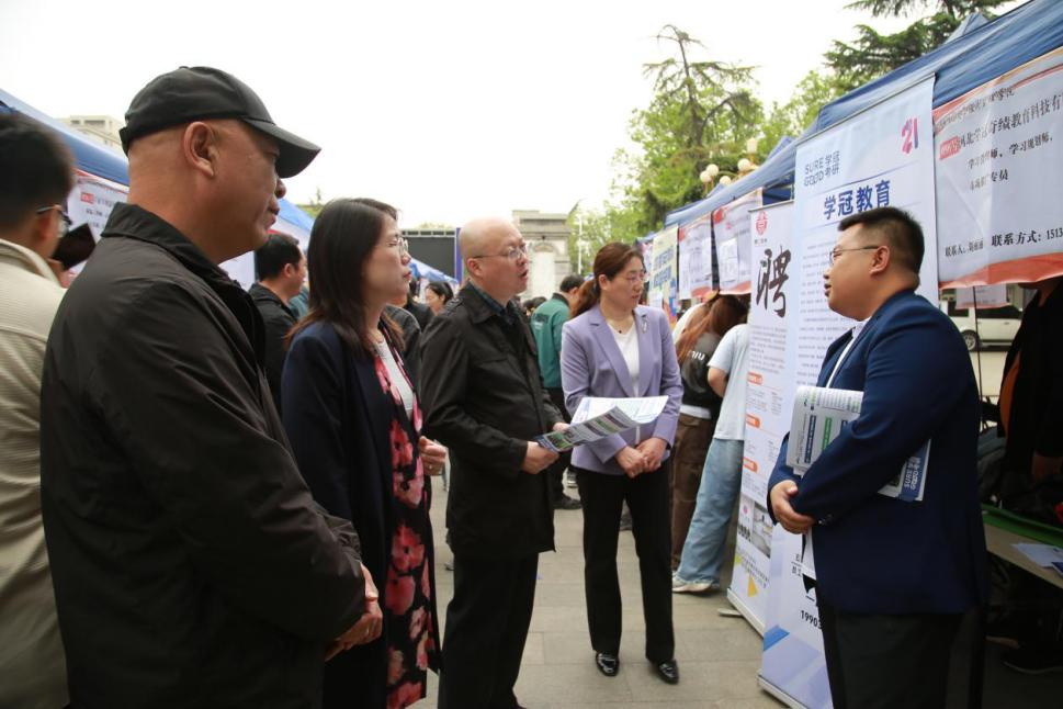 双选会现场人头攒动,秩序井然。参会企业涵盖了互联网、金融、教育、物流、外贸等多个领域,招聘人员通过发放宣传资料、面对面讲解、线上直播等方式,向学生推介企业,答疑解惑。到场的毕业生们也做好了充足准备,主动与用人单位沟通交流,详细询问岗位情况,积极展现自身优势与特长,表达就业意向。