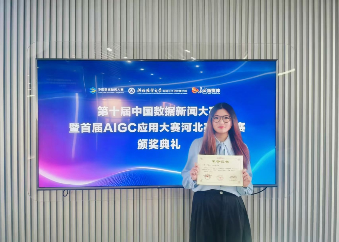 10月28日,第十届中国数据新闻大赛暨首届AIGC应用大赛河北省赛区决赛颁奖仪式在长城新媒体集团隆重举行,beat365学子荣获三等奖,来自河北省内高校的师生代表共计100余人参与活动。