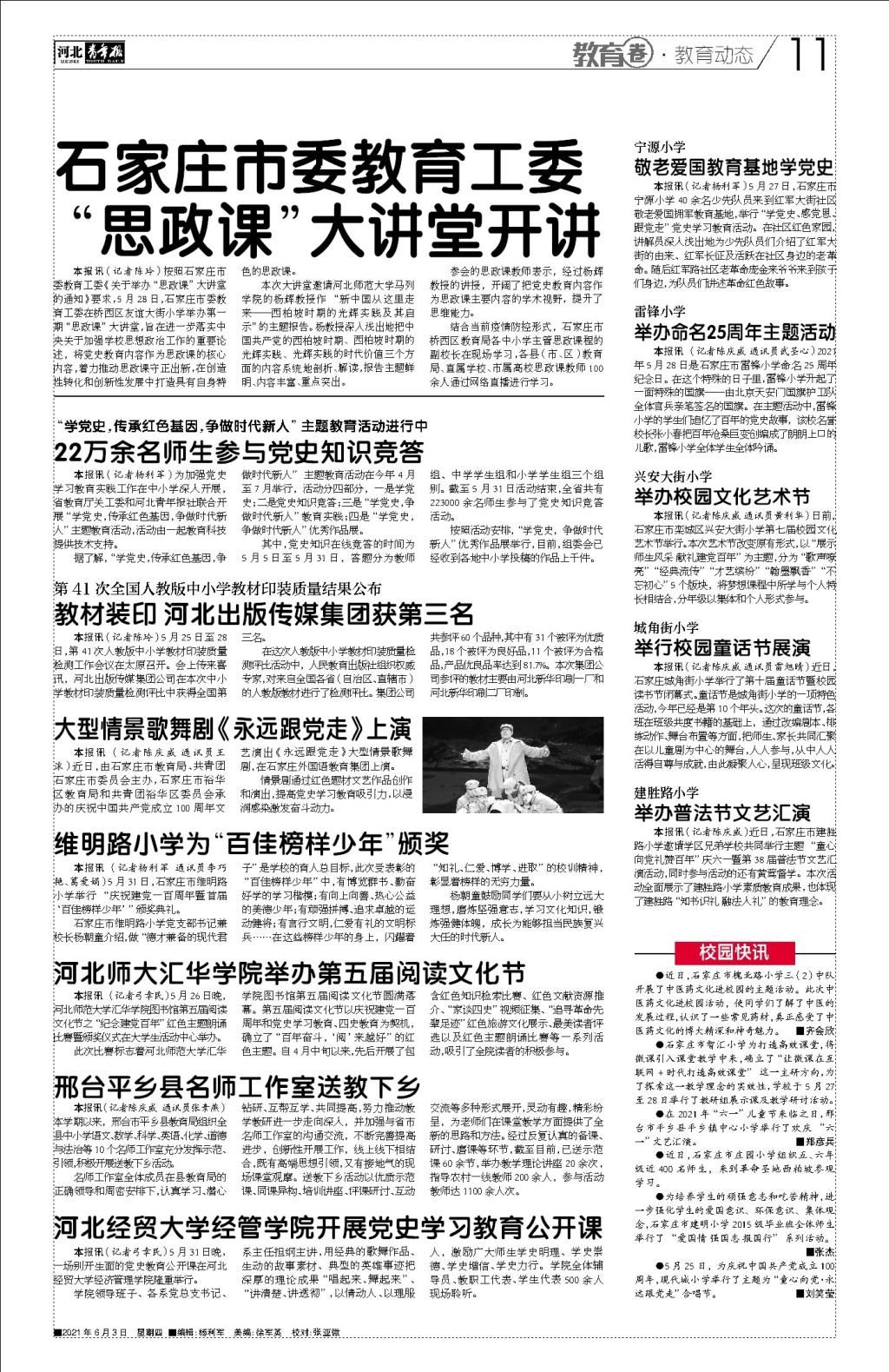 5月31日,beat365隆重举行“庆祝中国共产党成立100周年”主题公开课,中国教育网、河北日报、河北教育网、河北电视台冀时客户端、长城网、共产党员网、河北电台综合频率、河北青年报等多家有影响力的媒体争相进行报道,今日头条、封面、人民资讯等多家网络媒体转发。