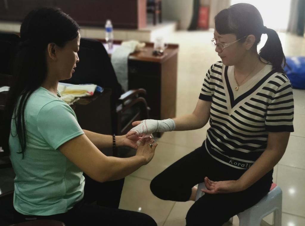 理论课堂上,梁大伟详细介绍了2021年新调整的应急救护相关政策及更新的相关知识。实操现场,李冬旭演示了心肺复苏术和创伤包扎的操作步骤,并耐心解答学员提问。随后学员们重点实操演练了人工呼吸、胸外按压、止血、包扎等紧急救护技能。