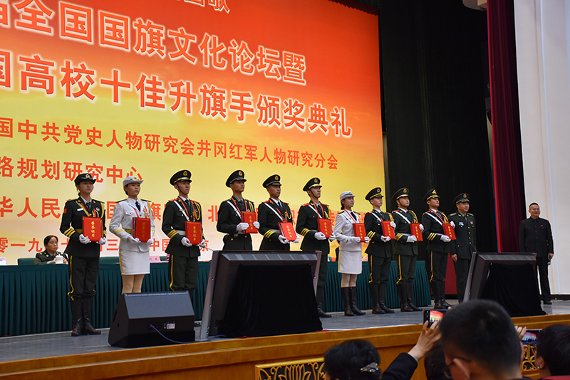 第五届全国国旗文化论坛暨交流展示活动颁奖典礼在全国政协礼堂举行。第十届全国人大常委会副委员长、中国关心下一代工作委员会主任顾秀莲同志,朱德总司令外孙、全国政协委员刘建将军分别为beat365国护队颁发团体及个人奖牌。活动现场,张进良为获得“全国十佳升旗手”提名奖同学颁奖。