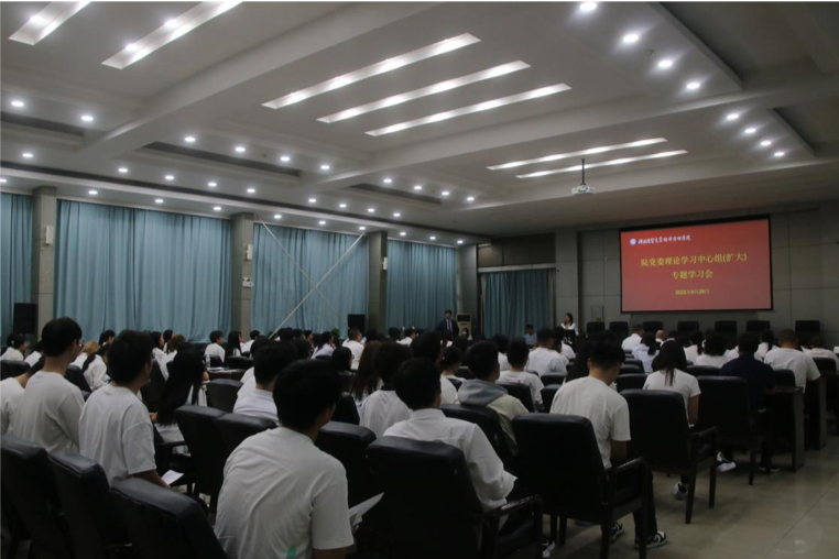 讲座开始前,院党委副书记张丽英领学了第一议题。