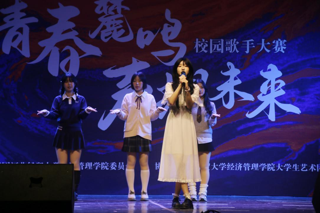 决赛舞台上,选手们的精彩表现令人目不暇接。从动感的民谣到激昂的摇滚,从甜美的流行曲到深情的情歌,他们用自己的方式诠释着音乐的魅力,展现了对音乐的独特理解和热爱。大学生艺术团的成员们还为选手们倾情伴舞,为观众们呈现一场视觉听觉的盛宴。最终,经济系包靖怡以她那浑厚细腻的嗓音,深情演绎了《三寸天堂》,哀婉忧伤的旋律直击人心,赢得了现场观众的一致好评,最终摘得桂冠;文法系的杜羽凡则以一首轻松活泼的《无论你多怪异 我还是会喜欢你》,展现了大学生朝气蓬勃的青春活力,荣获亚军;同样来自文法系的张雨洛,用一首饱含深情的《如愿》触动了每一位听众的心弦,深情诠释了孩子对父母的感激与爱意,获得了季军。