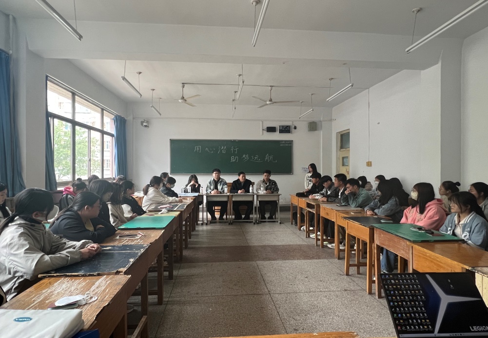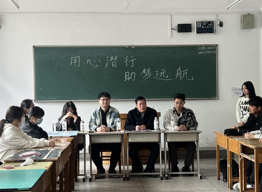 调研会主题为“用心潜行,筑梦远航”。全班学生逐一对张进良提出的认识自己、认识朋友和大学规划等问题进行了回答,班委从学业完成进度和班级日常工作、未来展望等三方面进行了汇报。